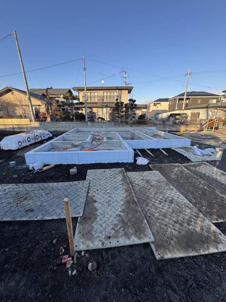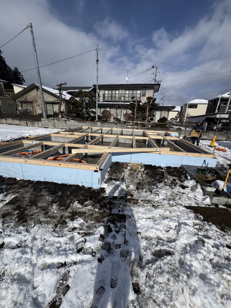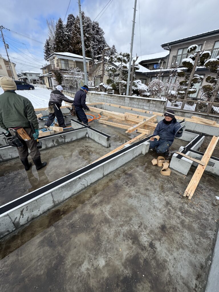 年が明け、雪もありますが、家を支える「土台」を敷きました。