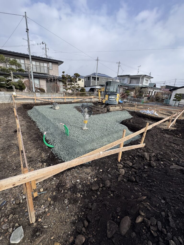 ② 掘削・砕石|家を支える土台づくり
